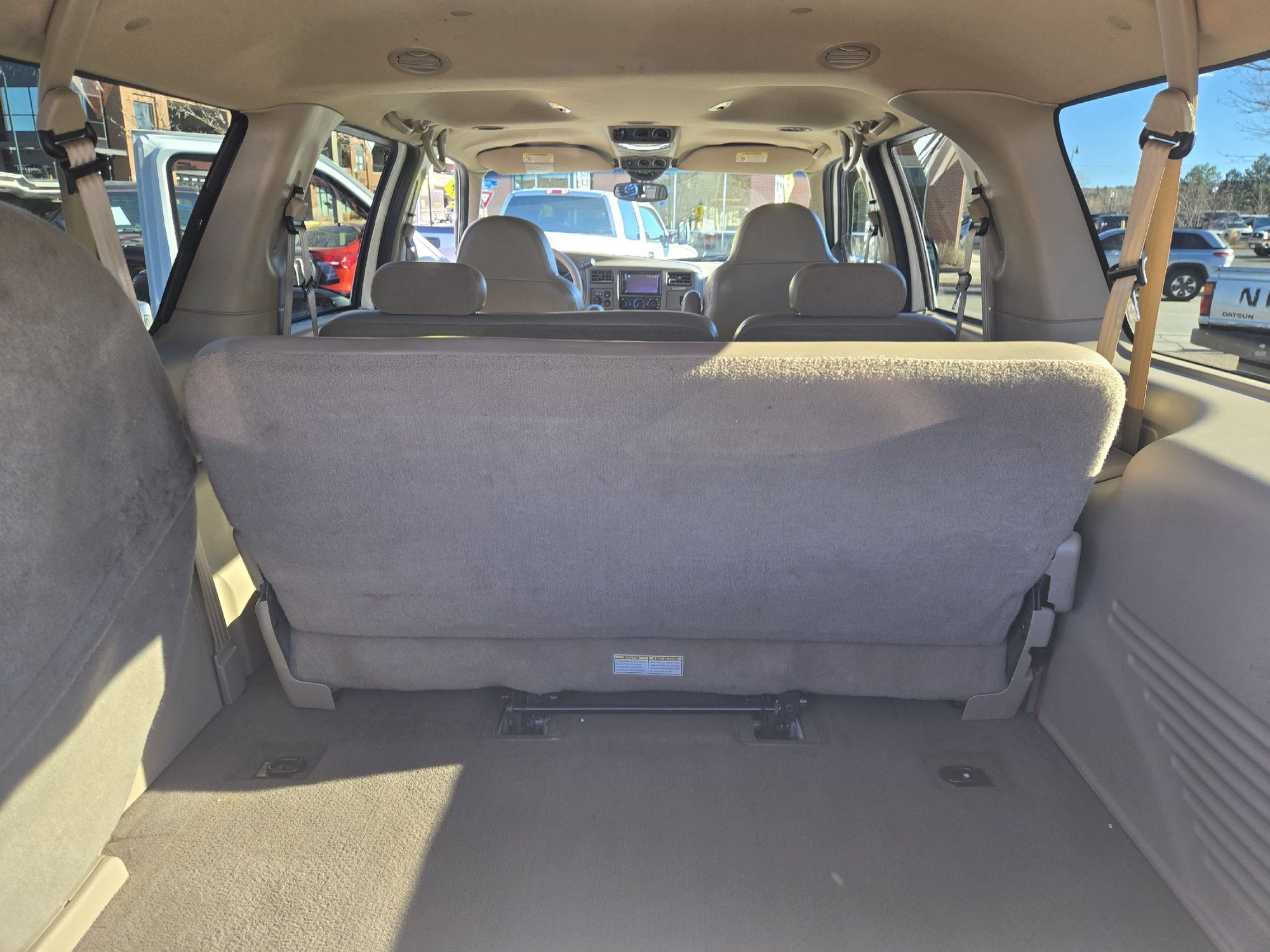 Third-row seatback upholstery: Carpet third-row seatback upholstery