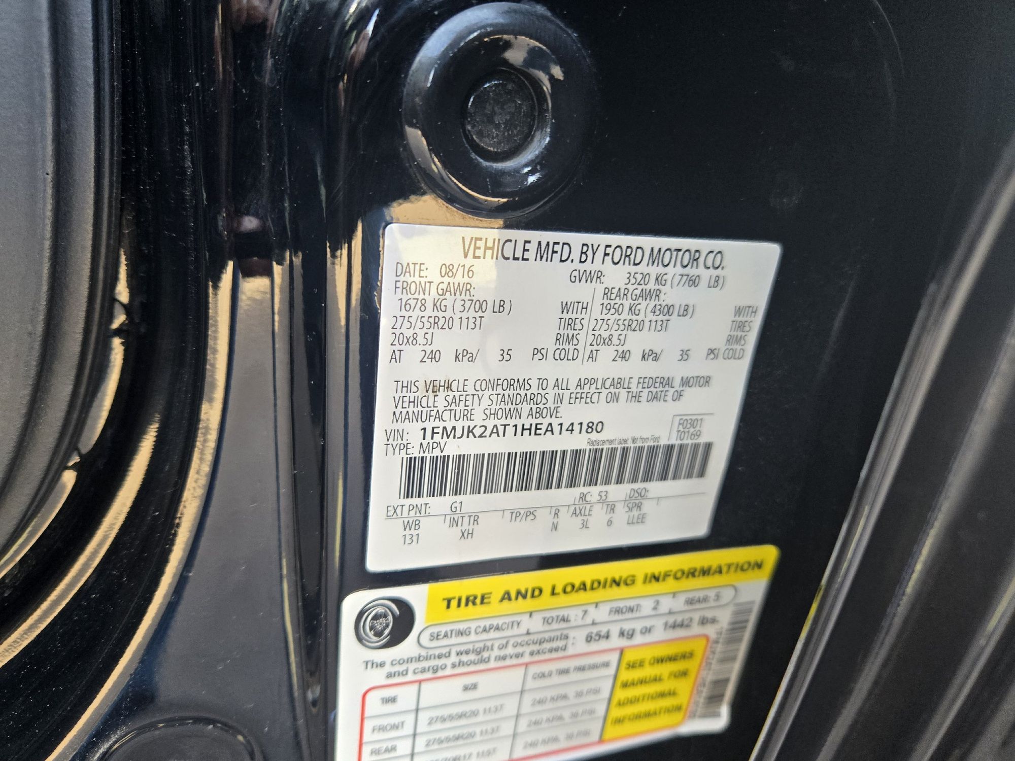 Third-row seat upholstery: Vinyl rear seat upholstery