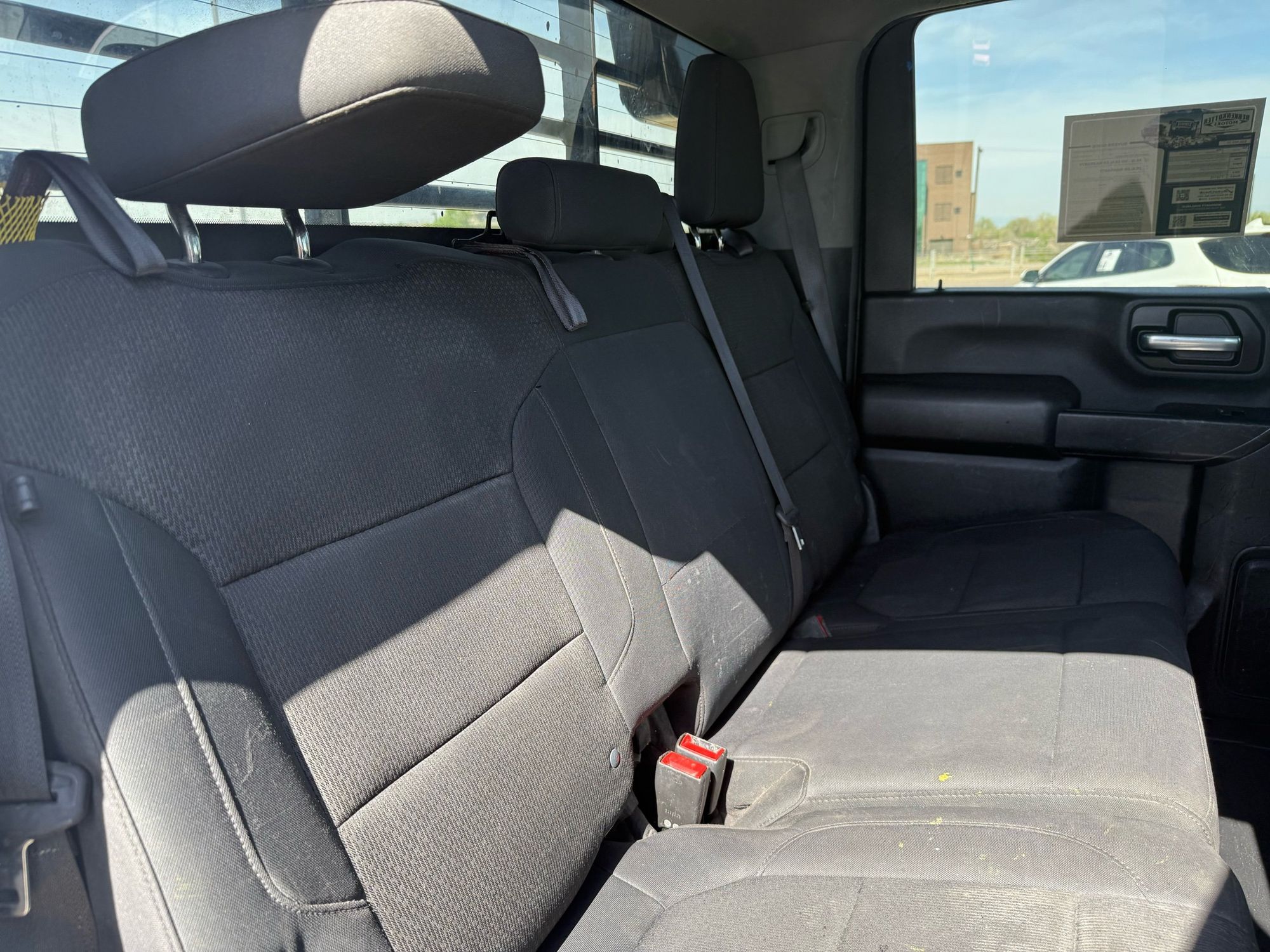 Front seatback upholstery: Plastic front seatback upholstery