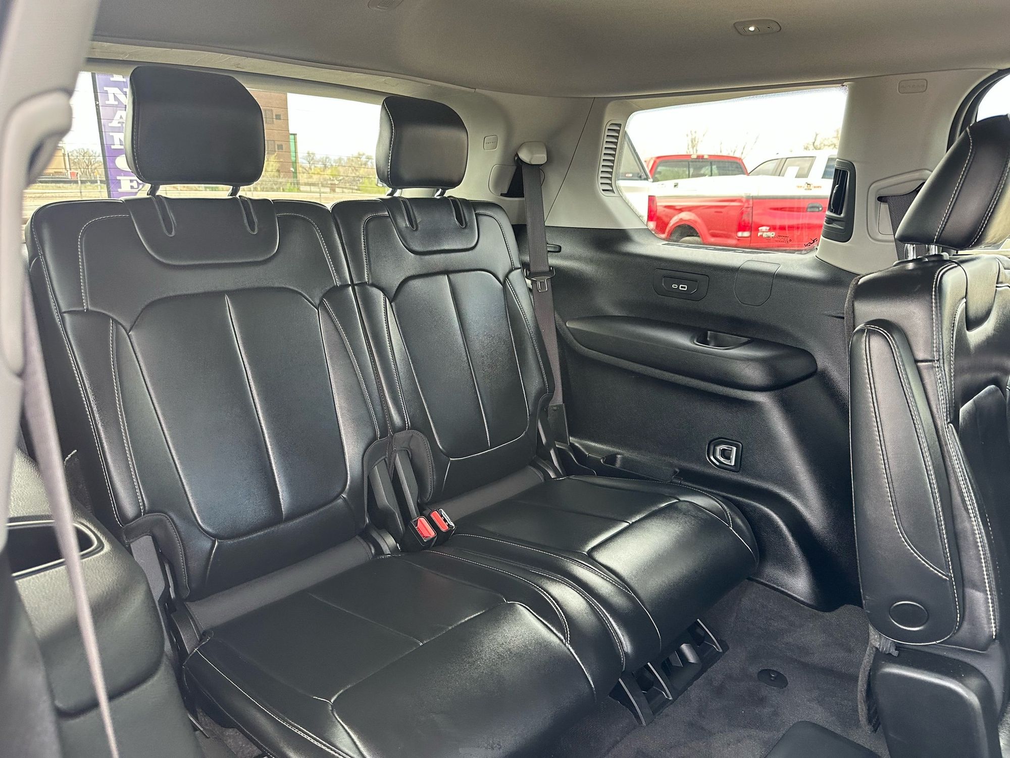 Third-row seatback upholstery: Carpet third-row seatback upholstery