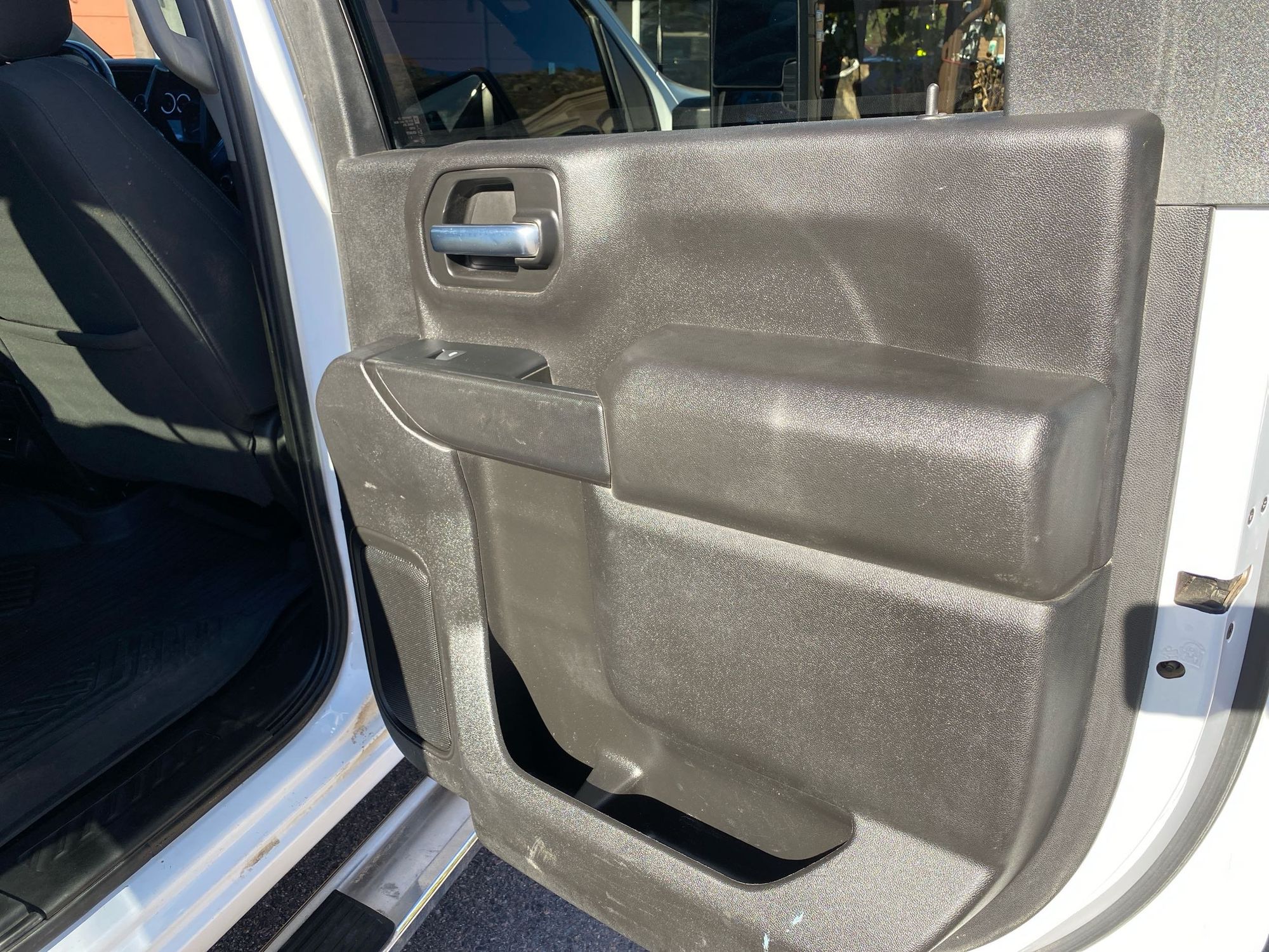 Front seatback upholstery: Plastic front seatback upholstery